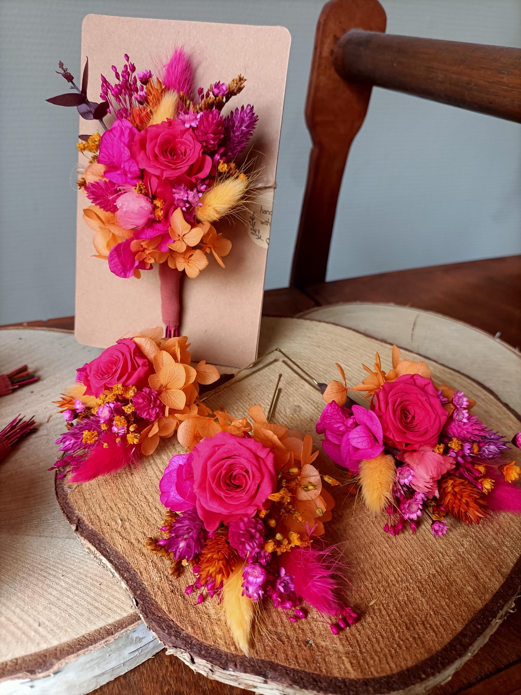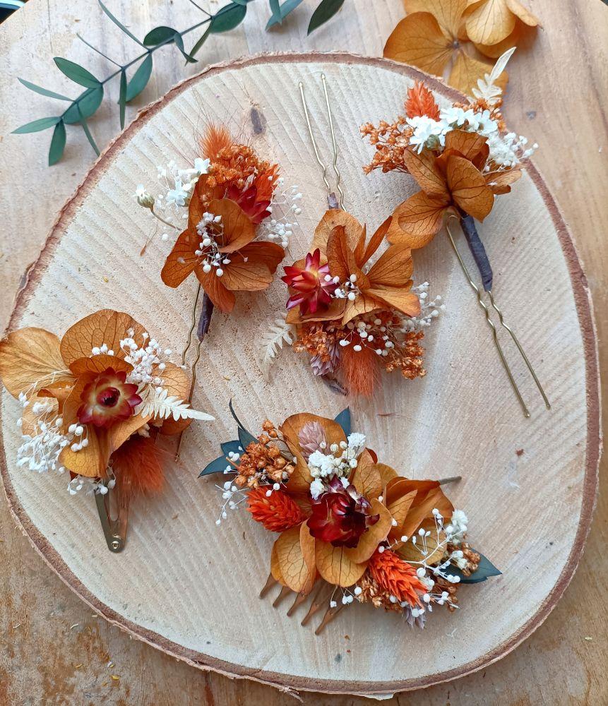 Accessoires en fleurs séchées et stabilisées.