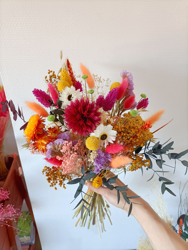 Chaque bouquet est réalisé à la main, sur commande, selon les fleurs disponibles. Les variétés peuvent donc légèrement varier, tout en conservant le même esprit et la même harmonie.